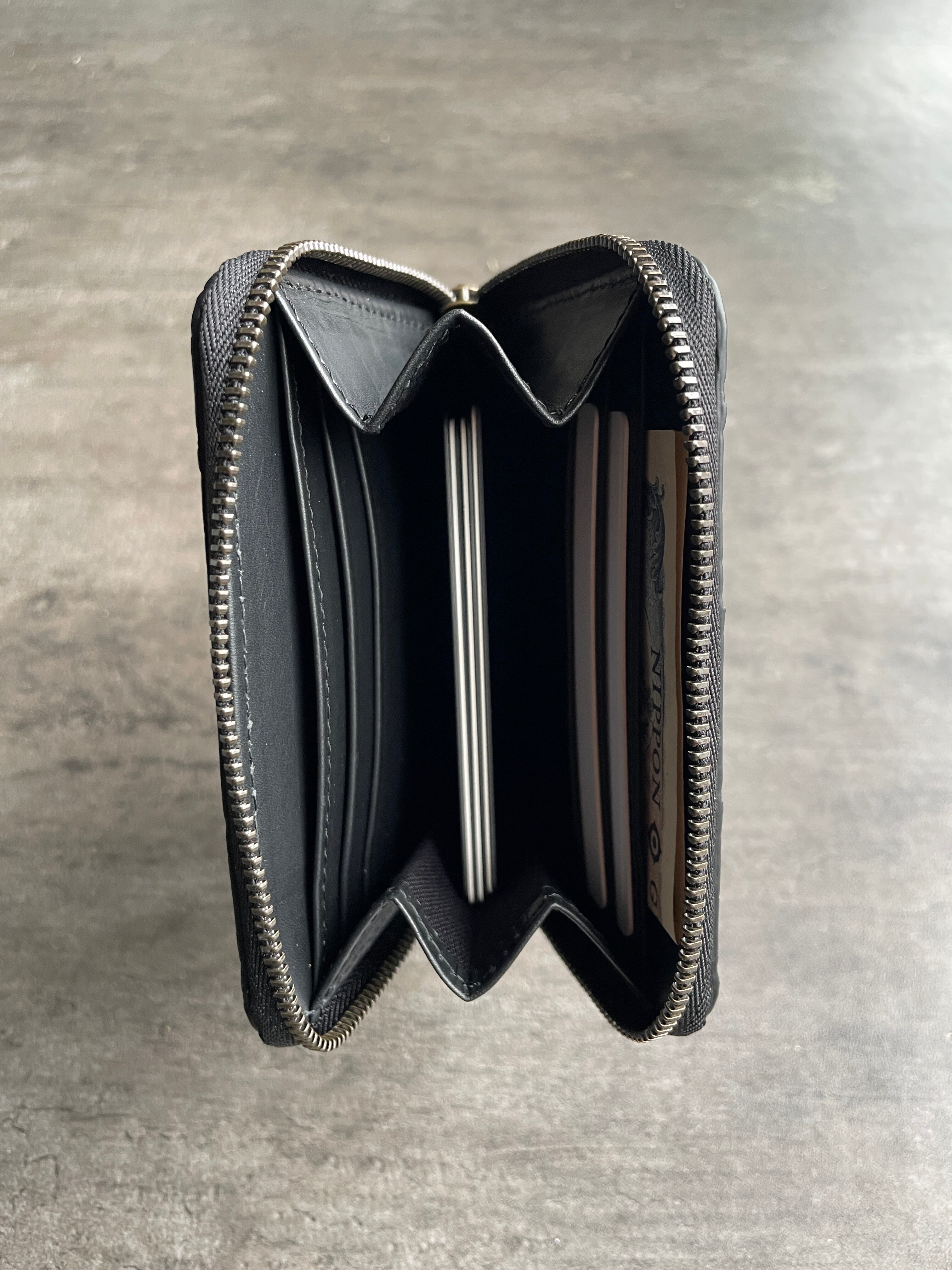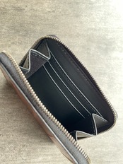 中央部分は大きめのマチで、コインや紙幣や他のカードをまとめて収納できるゆとりあるスペースとなっています。
