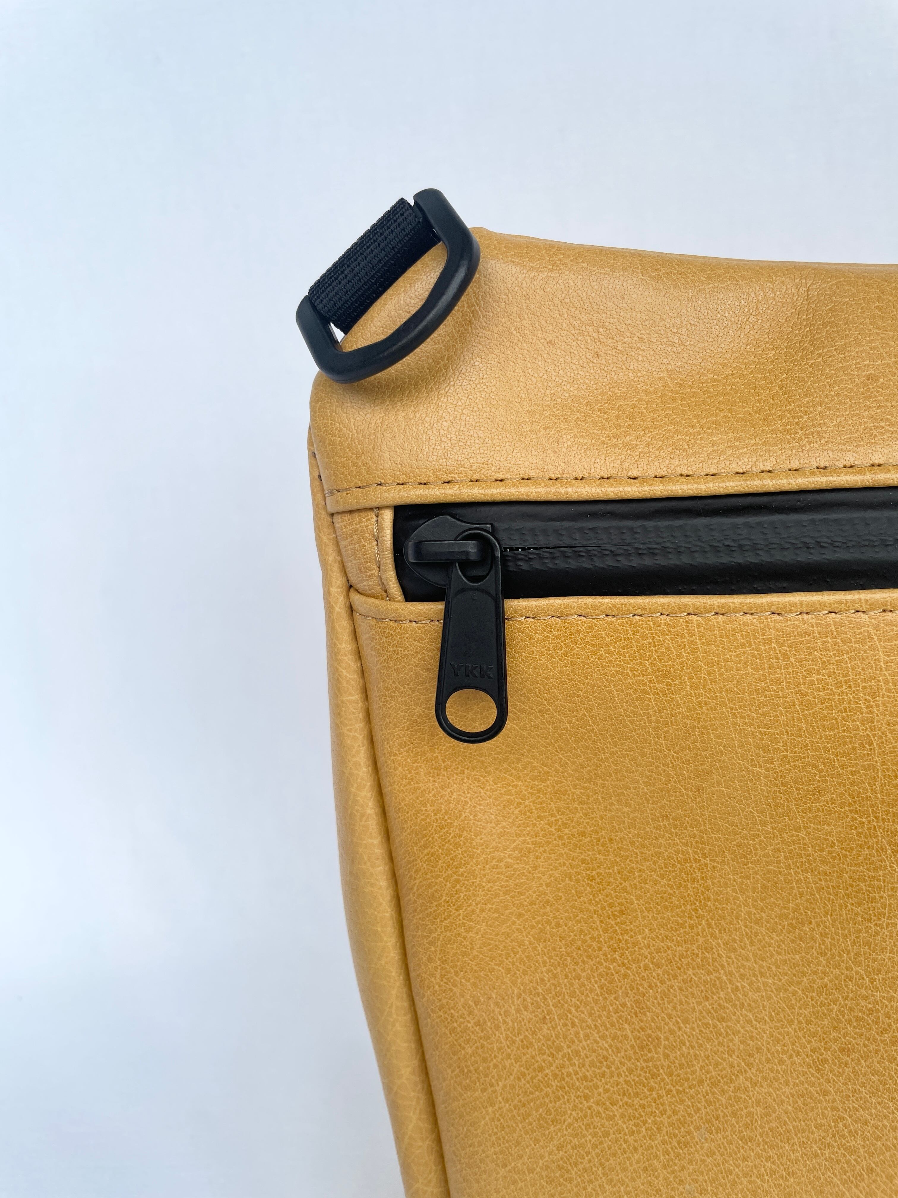 しっかりとったマチはスマホや財布、ペットボトルなど必要なアイテムをしっかり収納できます。また、内側はシンプルでありながら丈夫な黒色のコットン生地で、横幅21cm × 高さ13cmの大きめのポケットが一つ装備されており、細かいアイテムもバラバラにならずに収まります。
