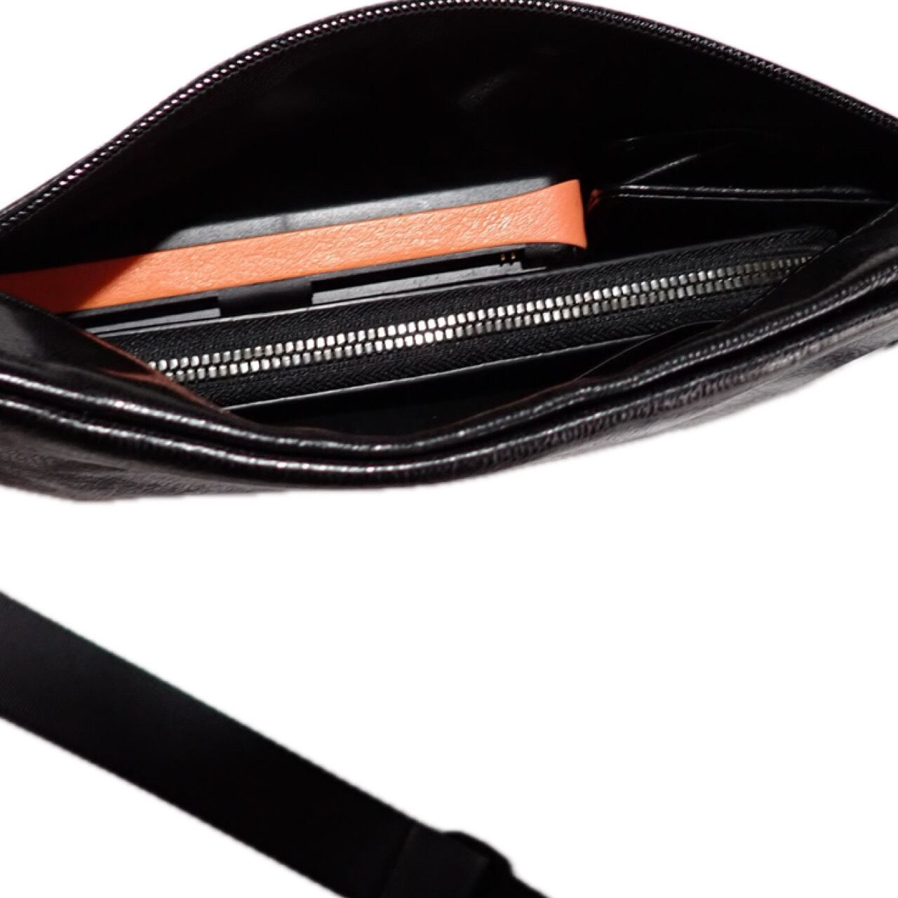 内側はシンプルで丈夫な黒色のコットン生地で、さらっとした手触りになっています。幅約22cm×高さ約13cmの大きめのポケットも付いています。
